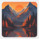 Pegatina Cuadrada Mountain Sunset Reflection Fiery Orange Sky