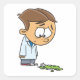 Pegatina Cuadrada Muchacho triste científico con experimento roto