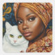 Pegatina Cuadrada Mujer elegante con gato