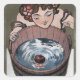 Pegatina Cuadrada Mujer mirando en barril de madera