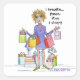 Rodeada de cajas y cargando bolsas de compras nuestra bien vestida dama ha regresado de las tiendas. Con un vestido azul de manga larga, bombas verdes, collar y pendientes con el pelo bien hecho en rizos, creo que mi sketch capta el momento en que regresa a casa, explicando que las compras son centrales para su ser. Tal vez no al exceso del personaje que esbocé, sino fiel a sus propias creencias. Gracias, Pam Elifritz