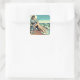 Pegatina Cuadrada Mujer retro de los años 50 sentada en la playa