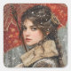 Representación digital de una pintura altamente realista de una mujer en un vestido victoriano afuera en clima de nieve.