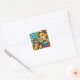 Pegatina Cuadrada Mujeres de arte pop cómico personalizado sostienen
