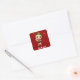 Pegatina Cuadrada Muñeca de abejorro amarillo sobre terciopelo rojo