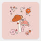 Pegatina Cuadrada Musesos Y Flores Peach Art Retro 70