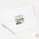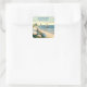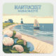 Pegatina Cuadrada Nantucket Beach Hydrangeas Lighthouse Bote Retro
