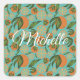 Pegatina Cuadrada Naranja de acuarela Turquesa Botánica Personalizad