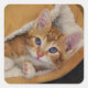 Pegatina Cuadrada Naranja Kitten Encerrado En La Cama