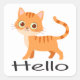 Pegatina Cuadrada Naranja Kitty Cute Tabby Personalizado Kitten Hola