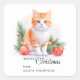 Pegatina Cuadrada Naranja lindo Tabby Kitty Merry Navidad