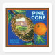 Etiqueta de caja de fruta de época para Naranjas de la marca Pine Cone de California.