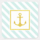Pegatina Cuadrada Nautical Mint Stripes Faux Purpurina Anchor