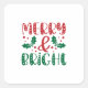 Pegatina Cuadrada Navidad alegre y brillante con acebo rojo y verde