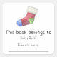 Pegatina Cuadrada Navidad calcetín - Este libro pertenece con mensaj