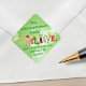 Sello de sobre de dirección de devolución de Navidad BELIEVE verde. Comparte tu espíritu navideño con este sello de sobre de dirección de devolución de Navidad que presenta la palabra BELIEVE en una tipografía creativa nostálgica y caprichosa que incorpora íconos como Santa, renos, duendes, un trineo y más en un fondo bokeh verde. CAMBIOS: Cambie el estilo de fuente de texto, tamaño y color y ubicación en EDITAR. Contacte al diseñador a través de Zazzle Chat o makeitaboutyoustore@gmail.com si desea que se modifique este diseño, en otro producto o si desea artículos coordinados.