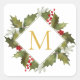 Pegatina Cuadrada Navidades acuarela Gran Monograma Holly Wreath