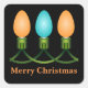 Tres coloridas bombillas de luz de vacaciones todas seguidas aparecen en el gráfico de los Navidades decorando este diseño pegatina de vacaciones en tonos naranja y azul con cables verdes entre ellos.