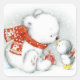 Pegatina Cuadrada Navidades Bebé Oso Polar Besando Ave