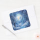Pegatina Cuadrada Navidades Blue Trees Woods River Snowy Scene