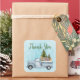 Gracias pegatinas con un diseño festivo. Camión con Navidades de pinos junto con algunos animales de bosque. Un oso, un zorro y un ciervo parados en la parte de atrás yendo a dar un paseo. Diseño creado con acuarelas.