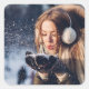Pegatina Cuadrada Navidades Chica de invierno sopla nieve en su mano