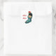 Pegatina Cuadrada Navidades cortos, niño pequeño, rojo blanco