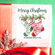 Añade un toque personal a tu temporada de fiestas con esta pegatina festiva de Navidad. Con "Feliz Navidad" en un guión elegante y tres medias tradicionales adornadas con ungüento, este diseño de acuarela es suave y acogedor. Personalizar el área de texto con el nombre de su familia y el año para que sea única suya. Perfecto para regalos y correspondencia de vacaciones!