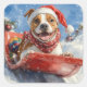 Pegatina Cuadrada Navidades de American Staffordshire en Sledge