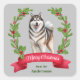 Pegatina Cuadrada Navidades de Banner de Alaskan Malamute Dog Holly