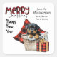 Este pegatina de vacaciones cuenta con un adorable cachorro rottweiler Navidad en una cesta tejida. Detrás del perro hay una almohada rojiza y negra de búfalo trenzado, y un paquete de regalo a juego se sienta al lado de la canasta. Los búfalos pintan pares de tipografía con escritura negra para decir "FELIZ Navidad", con "Feliz Año Nuevo" debajo de eso. La firma del personalizado se encuentra en dos campos de texto fáciles de cambiar. Perfecto para tu correspondencia de vacaciones.
