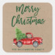 Pegatina Cuadrada Navidades de Camión de Cepillo de Kraft