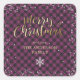 Pegatina Cuadrada Navidades de copo de nieve con búfalo morado dorad
