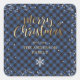 Pegatina Cuadrada Navidades de copos de nieve con búfalo azul dorado