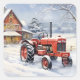 Pegatina Cuadrada Navidades de la antigua granja de invierno Tractor