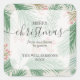 Hermosas bayas rosas y ramas de pino sobre un fondo de taupe y tus detalles en letras de moda, estos pegatinas cuadrados son elegantes para cualquier ocasión de vacaciones para Navidades. COINCIDIENDO elementos de nuestra colección.