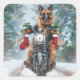 Pegatina Cuadrada Navidades de motocicleta de Pastor Alemán