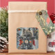 Pegatina Cuadrada Navidades de motocicletas Keeshond Dog Riding