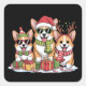 Pegatina Cuadrada Navidades de perro de Corgi Regalo de vacaciones d