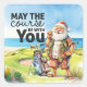 Pegatina Cuadrada Navidades de verano con Santa Claus a la bandera