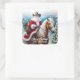 Pegatina Cuadrada Navidades de Western Santa Claus Riding Palomino