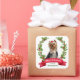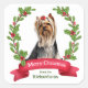 Pegatina Cuadrada Navidades de Yorkshire Terrier Holly Wreath