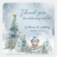 Pegatina Cuadrada Navidades del oso primer invierno de cumpleaños
