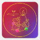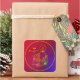 Pegatina Cuadrada Navidades Dibujo de la Línea de Vela Holly Rojo y