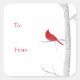 Pegatina Cuadrada Navidades Elegante Cardenal Rojo Árbol Birch