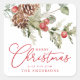 Pegatina Cuadrada Navidades elegantes Holly Berries y Pine Cones