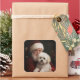 Pegatina Cuadrada Navidades festivos de Bichon Frise con Santa Claus