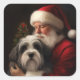 Pegatina Cuadrada Navidades festivos del Tibetano Terrier Santa Clau