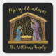 Pegatina Cuadrada Navidades Natividad Manger Gold Black Family Name