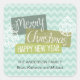 Un patrón contemporáneo de quevron acuático permite destacar tres paneles tonales verdes que sostienen el texto "Feliz Navidad" y "Feliz Año Nuevo". Cada uno tiene una ligera transparencia para que el patrón de cheurón se vea detrás de él. Los adornos de Navidad de fibra blanca cuelgan tocando los paneles. Personalizar el texto debajo como quieras. Excelente para el etiquetado de regalos o simplemente repartir como favores. Disponible en colores alternativos con productos coincidentes. com